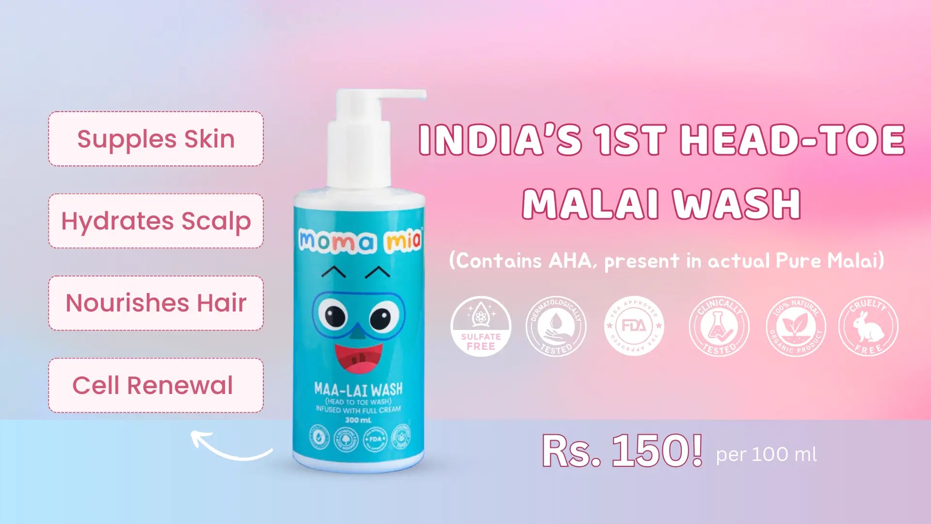 I was surprised to see AHA in it which is actually present in real Malai, after using this product on my kid I am sure I am not gonna switch to any other product for my kid