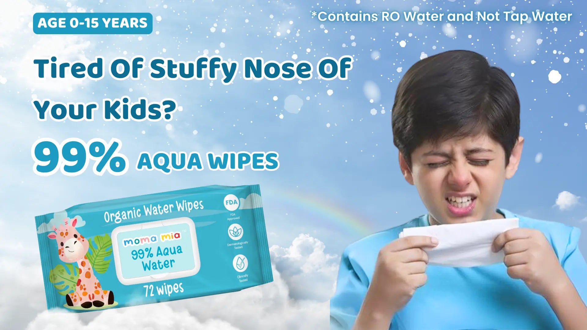 99% Pure Water Wipes for Sensitive to normal Skin (Pack of 4)