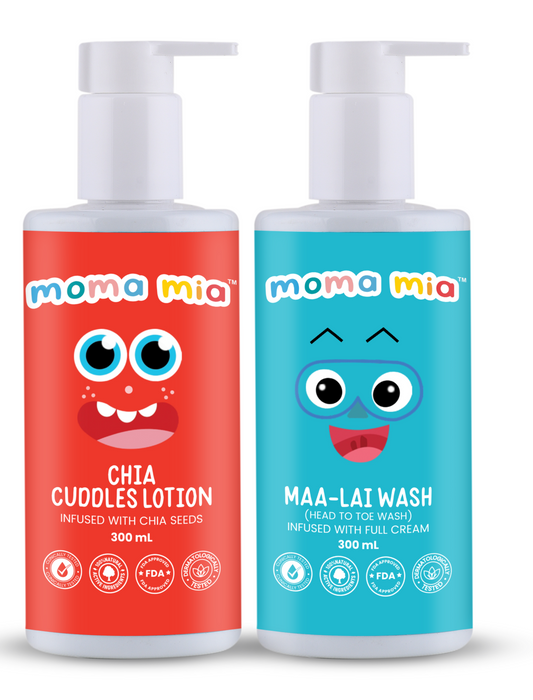Complete Care Collection I Nourishing 100% Organic Cold-Pressed Oil, Soothing Body Lotion, and Gentle Malai Wash I Soothing and Natural Kids care Combo